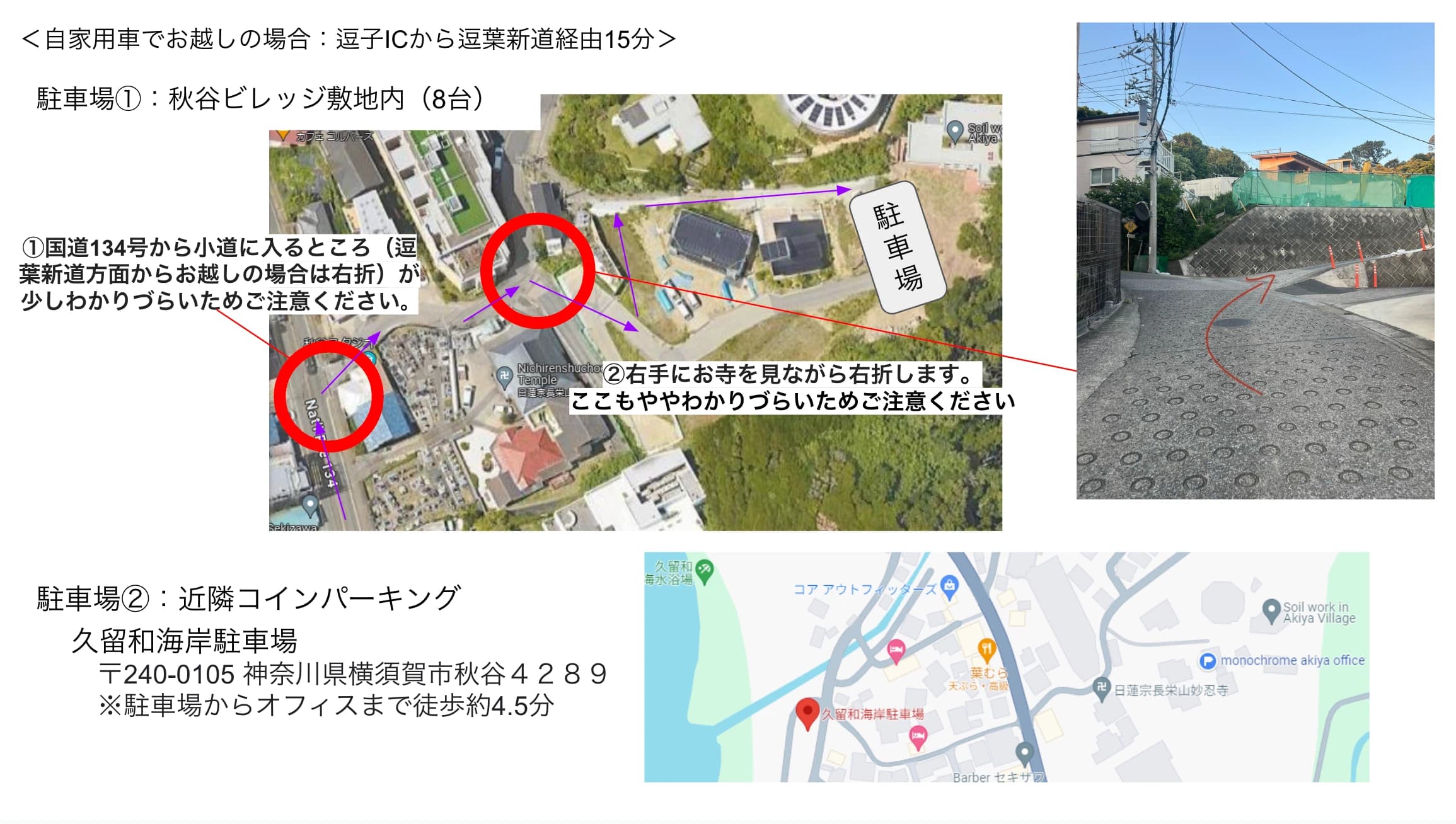 開催場所: モノクローム 秋谷オフィス1F  神奈川県横須賀市秋谷4321 お時間になりましたら、看板の案内に沿って1Fスペースへお越しください