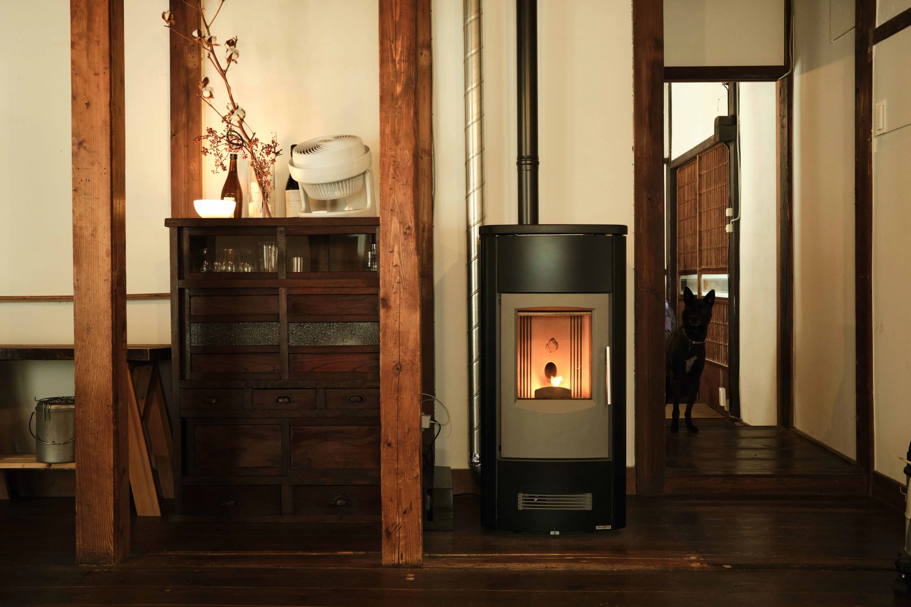 また、暖房はエアコンと併用してイタリアのピアツェッタ社製のペレットストーブを利用している。ペレットストーブは家全体を温めるセントラルヒーティングのような役割も果たしている。 エアコンとペレットストーブを動かすには電気が必要だが、電力源は太陽光パネルによる自家発電がメイン。かつ間伐材を原料とした木質燃料は、化石燃料よりもCO2の排出という観点ではより良い選択だ。