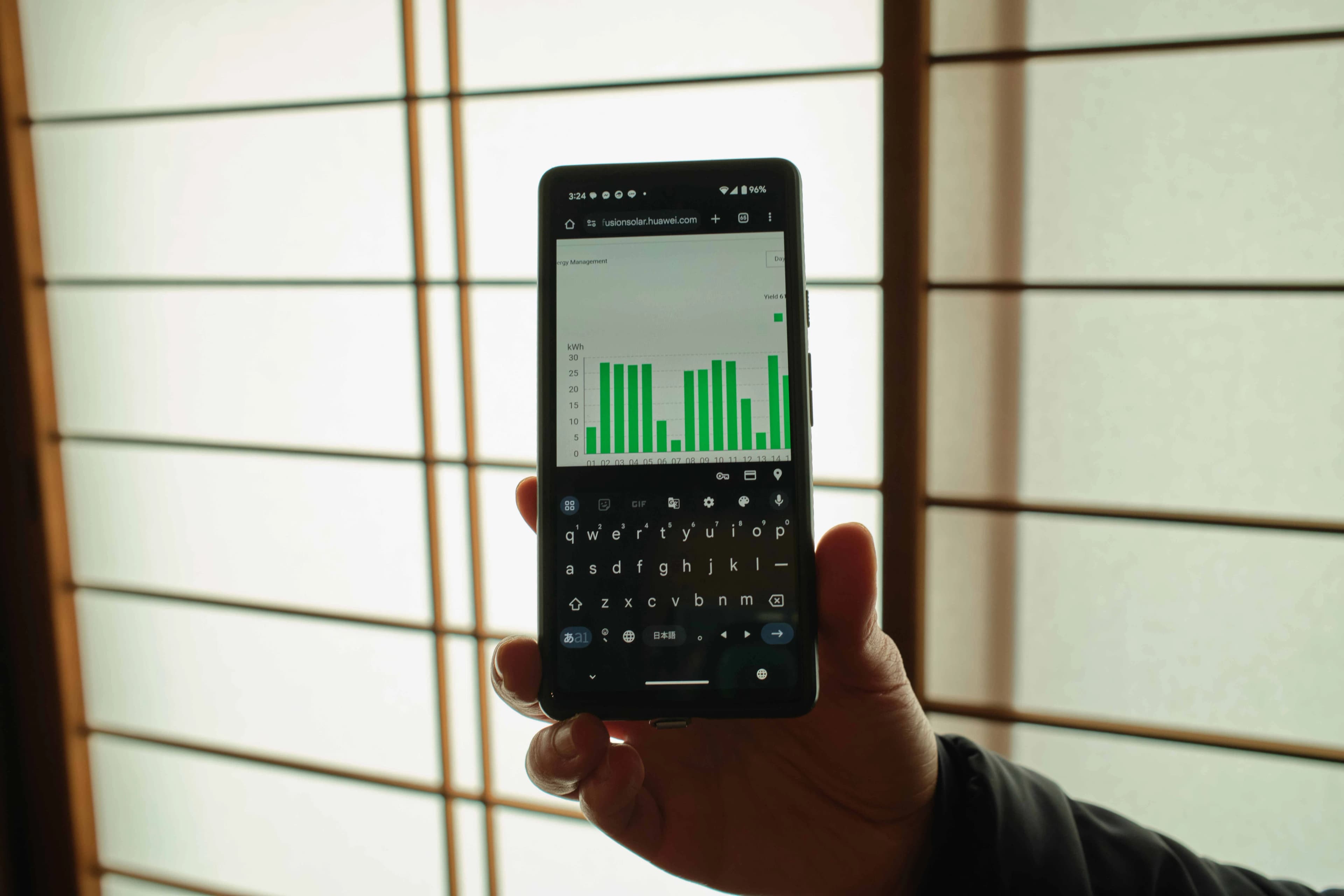 雪が多く降る地域では、太陽光発電が機能するのか気になるところだ。取材当日は大雪警報の中、かなりの積雪量で、車も立ち往生するほど。しかしながら、屋根一体型太陽光パネルRoof–1を採用しているこの家だけ、屋根からの落雪が早かった。そのため、日差しがあればすぐに発電が再開するというわけだ。この日も10時ごろにはアプリを見るとしっかりと発電していることを確認できた。