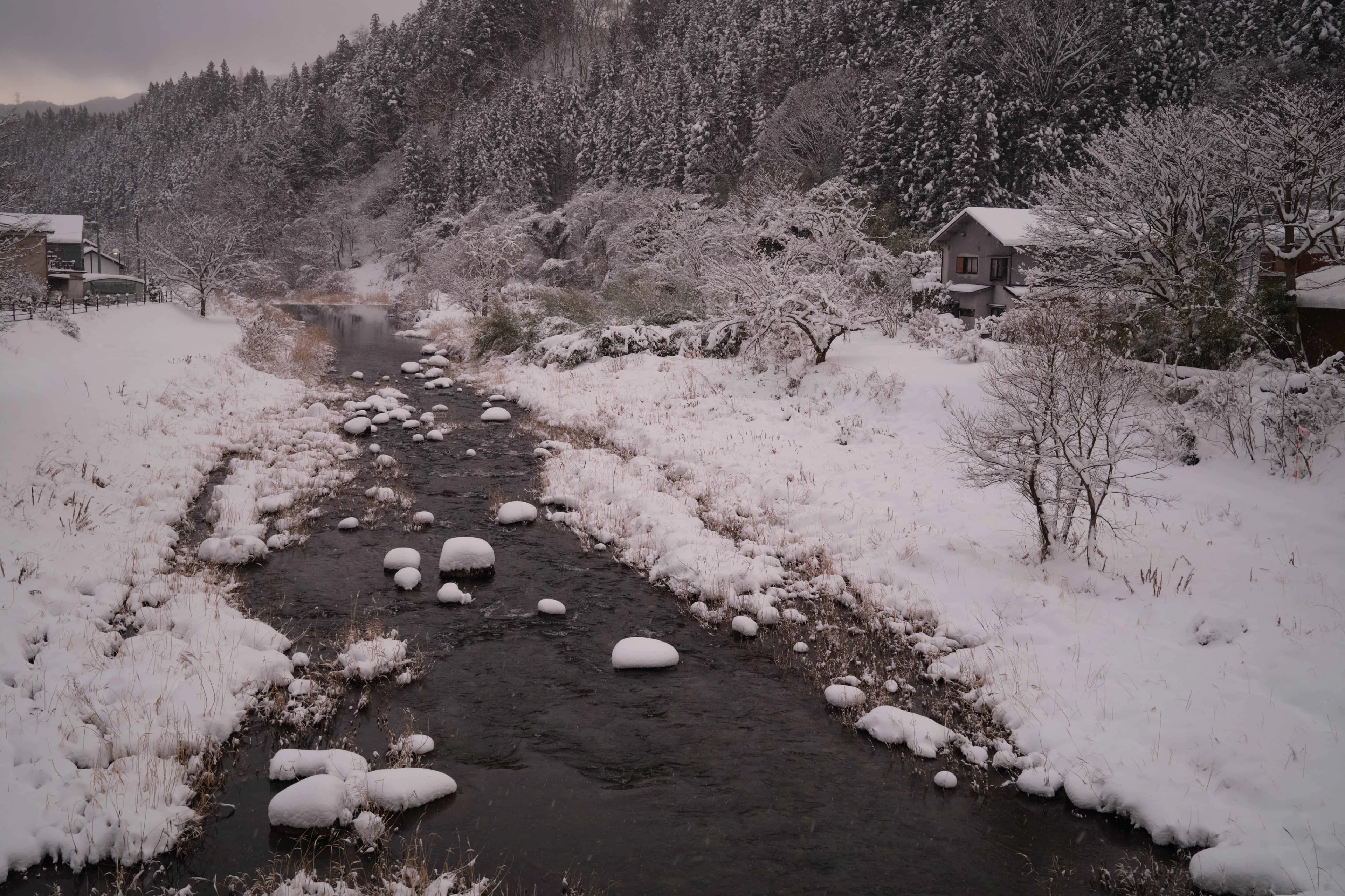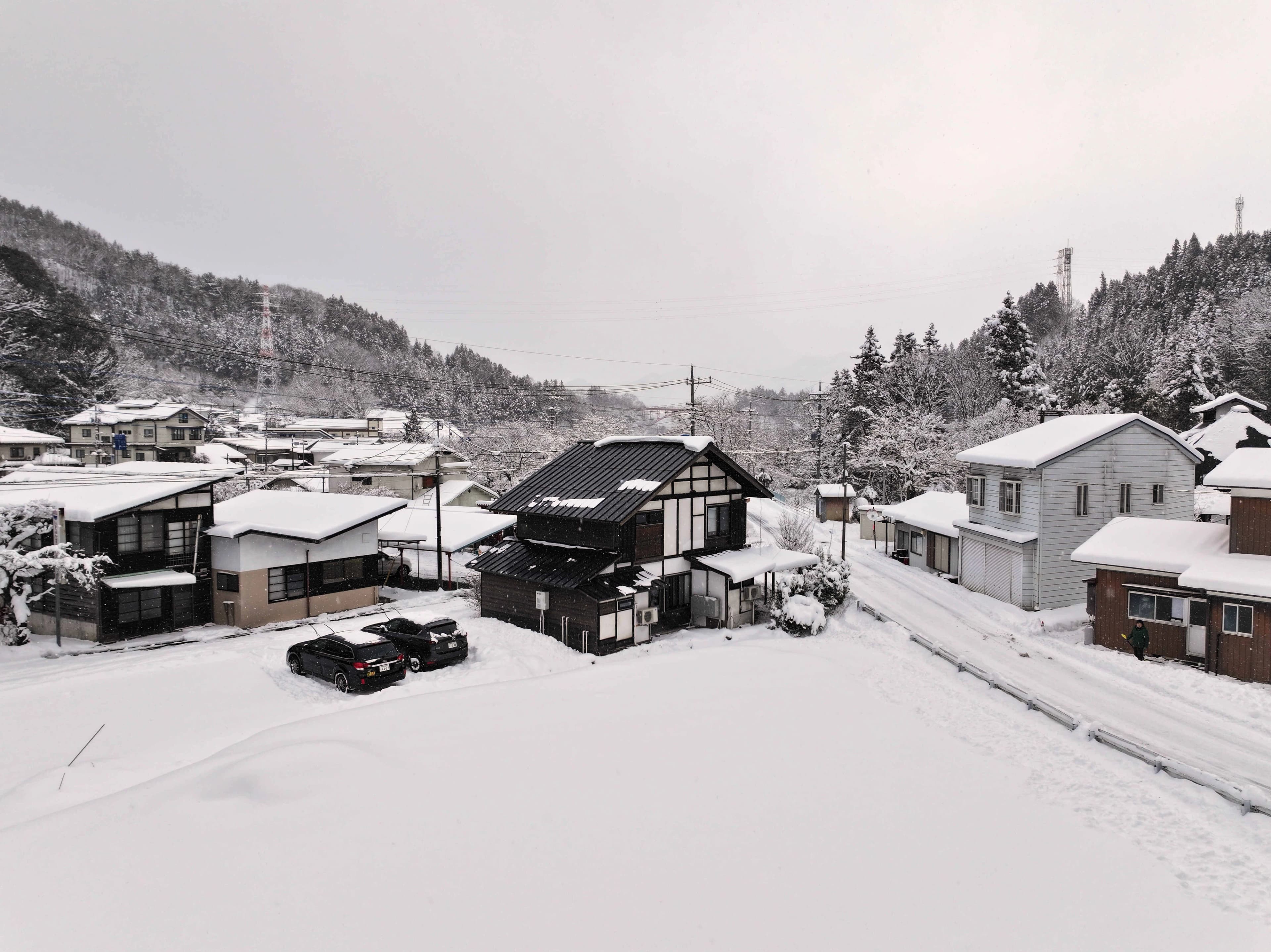 日本百名山の谷川岳をはじめとした山々を背景に、古民家の街並みが美しいこのエリア。2月中旬、私たちは大雪警報の中、美しい雪景色をカメラに収めにお施主様の住む町へと向かった。猛吹雪の中、除雪車があまり通らない峠道に迷い込み、落石注意、雪崩注意などのサインを横切る。半分雪に埋もれた公衆電話ボックスが、非常時の唯一のライフラインになりえることを思い出させる。自然への畏敬を感じながらも、未知への追憶とも言えようか、日本の原風景を見た気がした。みなかみは美しかった。